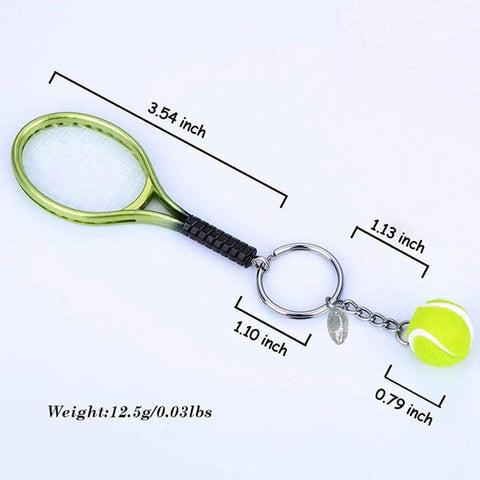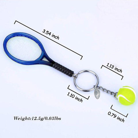 - Mini Size: Total Size: 4.7'' x 1.5''(12cm x 3.7cm), Racket Size: 3.5''(9cm). Key Ring Size: 1.1''(2.8cm). Ball Size: 0.8''(2cm).
